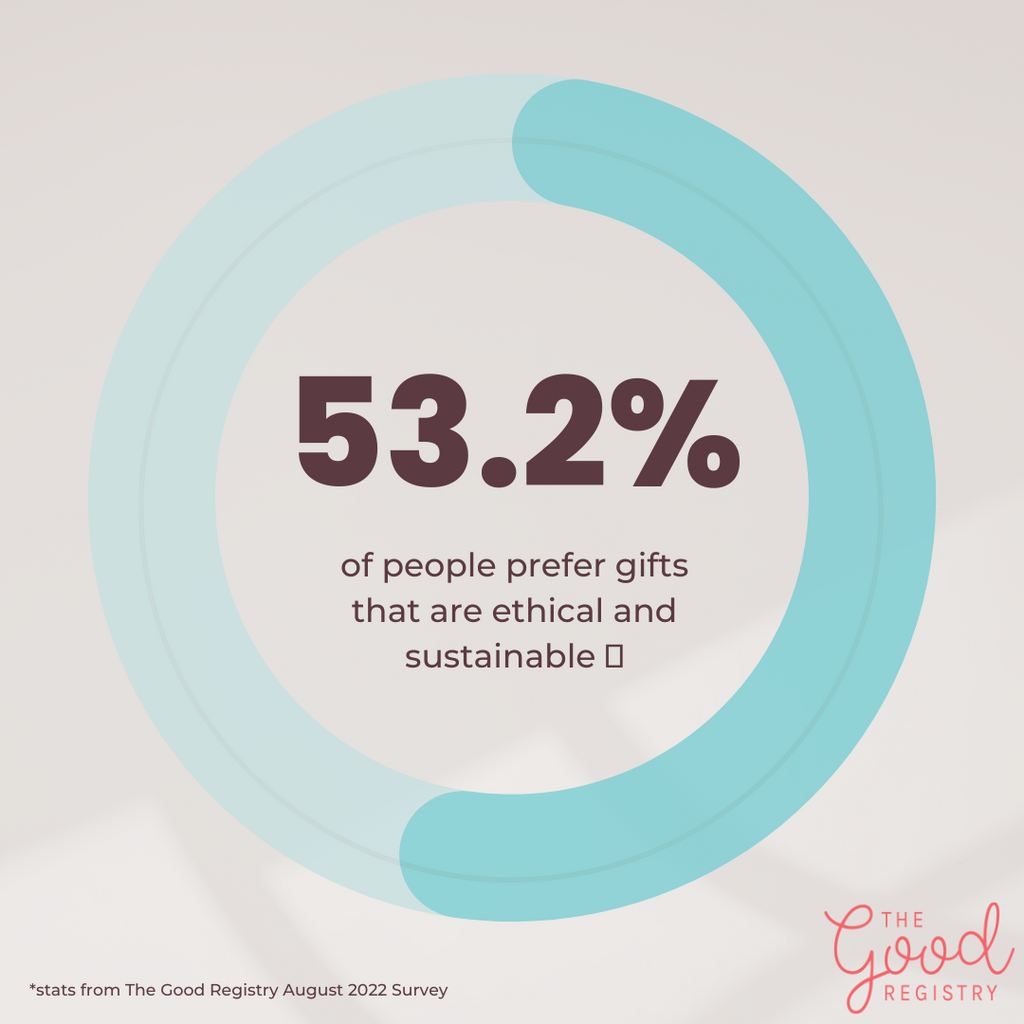 53% of people say they prefer receiving gifts that are ethical and sustainable - one of the positive stats from a recent survey by The Good Registry, which reinforces the shift towards more sustainable consumption and gift choices.